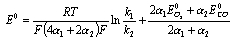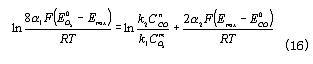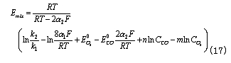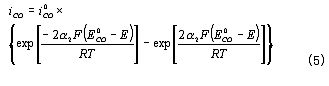 式中,  為CO的平衡電勢 ,  為CO的交換電流密度;a為CO氧化反應的電荷傳遞系數。——— 在平衡條件下,上述兩反應的電流密度相等,所以有