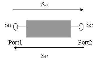 下面以二端口網絡為例說明各個S參數的含義,如圖所示。