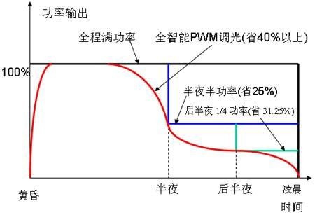 一般來說,路燈到半夜以后就沒有什么用處了,所以通常的做法是12點以后關燈或者開一半亮度。但是最合理的做法是根據(jù)交通流量來控制路燈的亮度,甚至是完全自適應地控制亮度。圖10就是根據(jù)當?shù)亟煌髁康慕y(tǒng)計值來調(diào)節(jié)路燈亮度的一個例子。