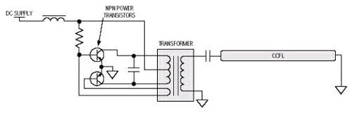 Royer架構(gòu)(圖1)的最佳應(yīng)用是在不需要嚴(yán)格控制燈頻和亮度的設(shè)計(jì)中。由於Royer架構(gòu)是自振蕩設(shè)計(jì),受元件參數(shù)偏差的影響,很難嚴(yán)格控制燈頻和燈電流,而這兩者都會(huì)直接影響燈的亮度。因此,Royer架構(gòu)很少用於LCD電視,盡管它是本文所述四種架構(gòu)中最廉價(jià)的。