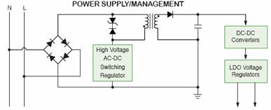 其中,就電源及電源管理模塊(參見圖1)而言,安森美半導體亦提供豐富的產品選擇,包括高壓交流-直流(AC-DC)開關穩(wěn)壓器、直流-直流(DC- DC)開關穩(wěn)壓器/控制器和低壓降(LDO)線性穩(wěn)壓器等(參見表1),方便用戶根據(jù)具體應用選擇適合的方案。這些電源方案具有高能效、低能耗及豐富保護 特性等特點,非常適合智能電表應用。