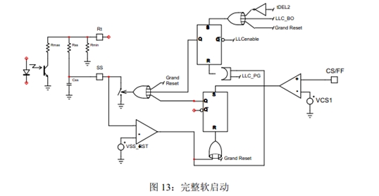 1.一個引腳用于Fmax、Fmin及FSS:Rmin決定LLC最小頻率;Rmin//Rmax決定LLC最大頻率;Rmin//RSS決定LLC啟動頻率;RSS和CSS決定軟啟動持續時間。Rt引腳控制LLC