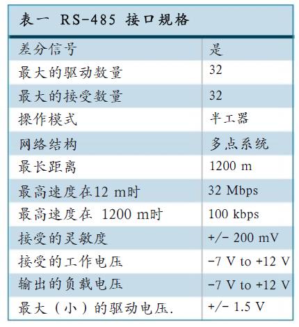 表一詳細的說明了RS-485 接口的規范。主要的參數包括-7V 到+12V 的工作電壓,32Mbps 的數據傳輸速度已經1200 米的傳輸距離等。一個完全兼容的RS-485 接口必須符合 IEC61000-4-2(靜電),IEC61000-4-4(群脈沖)和 IEC61000-4-5 (浪涌)標準。