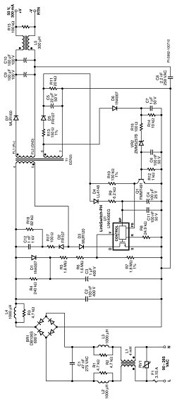 此設(shè)計的主要目標(biāo)是超薄和高效率。這樣有助于使驅(qū)動器板適應(yīng)T8燈管內(nèi)LED負(fù)載板后的空間,并將工作時的溫升保持在可接受的范圍以內(nèi)。為此,必須認(rèn)真選擇元件和安裝方法,但這相比于方案的更換更加簡單,因為初級側(cè)調(diào)節(jié)的LinkSwitch-PH設(shè)計所需的元件數(shù)量很少。