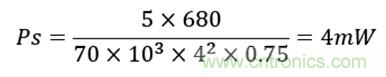 本次設計中,輸出功率為 5W,最大開關頻率設計為 70KHz。所以,可以計算得,理論待機功耗為: