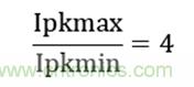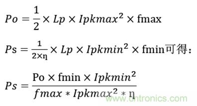 由上式可得,待機功耗的大小跟變壓器電感量大小,變換器具體的峰值電流無關,只與設計的最高工作頻率與芯片最低工作頻率比以及最大設計峰值電流和最小峰值電流比有關。根據芯片規格書得:
