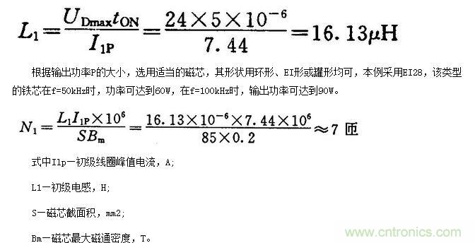 詳細的變壓器設計方法與計算相當復雜,本文參照經驗公式,依據下面的步驟設計了本例轉換器中的高頻變壓器。