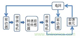 伺服電機可以進行電機對拖,公共直流母線采用單獨的整流/回饋裝置,為系統(tǒng)提供電能,調(diào)速用逆變器直接掛接在直流母線上,當系統(tǒng)工作在電動狀態(tài)時,逆變器從母線上獲取電能;當負載被被測電機反向拖動的時候,伺服電機將會變成發(fā)電機,能量通過母線及回饋裝置直接回饋給電網(wǎng),以達到節(jié)能、提高設(shè)備運行可靠性等目的。