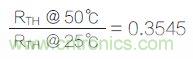 同樣,50℃時的RTH為10,000×0.3545≈3545Ω。