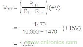 當輸入電壓超過參考電壓時,風扇將會開啟,但這一條件取決于環境溫度。注意:熱敏電阻的阻值取決于環境溫度。