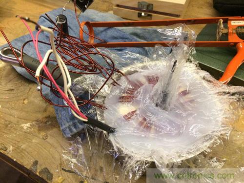 所以,這次我也想如法炮制。但是這次嗡嗡聲要大得多(我猜是因為次級繞組太松散),我決定把整個環芯都灌封好。但是,這可要用不少昂貴的環氧樹脂!也許用一些硅膠填隙劑來填充也可以起到同樣的效果。