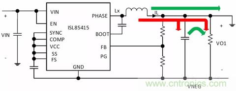 圖5. 將ISL85415降壓轉換器配置成反相降壓-升壓轉換器