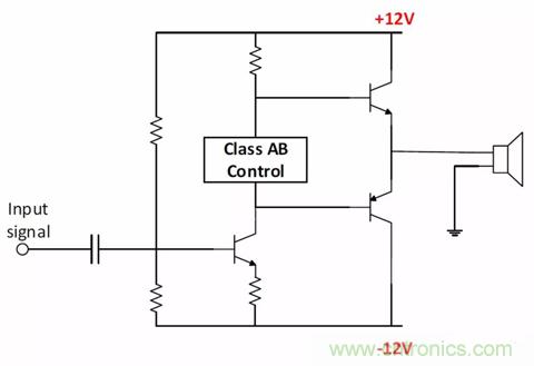雙電源放大器比較常見,因為它效率更高,能夠在不導致DC損耗的前提下復制輸入波形。圖11A顯示了具有±12V軌的音頻放大器,圖11B顯示了具有±5V軌的運算放大器。