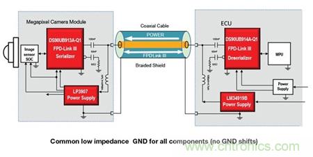 高速串行數字鏈路連接視頻組件,可在攝像頭的數字成像器與數字 LCD 顯示屏之間實現無縫連接。汽車視頻鏈路中部署的最常用及最可靠高速數字接口技術基于 ANSI/TIA/EIA-644-A 低電壓差分信號 (LVDS) 標準。LVDS 可提供一個穩健的數據傳輸標準,支持遠距離、低功耗、高噪聲抑制性以及低 EMI。LVDS 采用差分方式(而非接地所參考的單端信號)實現所需的鏈路屬性。