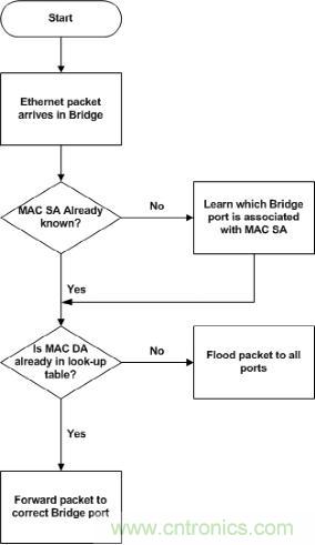 在圖1中,如果傳入幀的源地址(SA)以前沒有記錄,則將其與幀的傳入端口號一起添加到地址數(shù)據(jù)庫中。如果目標(biāo)地址(DA)已經(jīng)存在于網(wǎng)橋的查找表中,則數(shù)據(jù)包會相應(yīng)地轉(zhuǎn)發(fā),否則幀將被泛洪處理。多年來,管理L2所用協(xié)議的IEEE標(biāo)準(zhǔn)(如802.1 MAC橋、VLAN和基于端口的網(wǎng)絡(luò)訪問控制標(biāo)準(zhǔn))都集中在以太網(wǎng)幀的前16個(gè)字節(jié)。這些標(biāo)準(zhǔn)也在不斷發(fā)展,最近增加的包括以太網(wǎng)音視頻橋接技術(shù)(AVB)和時(shí)間敏感網(wǎng)絡(luò)標(biāo)準(zhǔn)(如802.1AS)。特別是,在汽車環(huán)境中對確定性網(wǎng)絡(luò)的需求正變得越來越急迫,以確保網(wǎng)絡(luò)中及時(shí)和可靠的數(shù)據(jù)傳輸。將所有ECU鎖定在單個(gè)主時(shí)鐘源并保持AV內(nèi)容質(zhì)量只是其中兩個(gè)例子,更多增強(qiáng)的功能還在引入以便于檢查OSI 3層信息,例如IPv4 / IPv6數(shù)據(jù)包優(yōu)先級和IPv4 / IPv6偵聽。