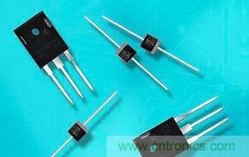 制造商也常常會提供肖特基二極管正常極性方案和反極性方案。例如,在圖8-24中,257-01封裝的螺栓端在反極性方案中它是作為陽極。元件名稱后跟"R"表示了反極性方案。但是,元件名稱很少標到器件上。還有一個問題是制造商使用同一個封裝去安放不同的器件。在圖8-24中的TO-236AB、TO-220AB也常用來封裝三極管。換言之,并不是一直可以通過簡單的觀察元件外形就能夠識別元件和它們的引腳。你一定要用原理圖或其他可得到的資料。