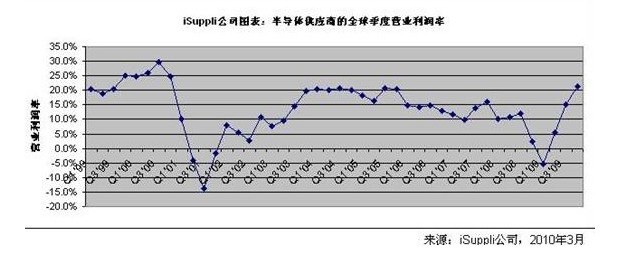 - 09年第四季度半導體供應商的整體營業利潤率升至21.4%