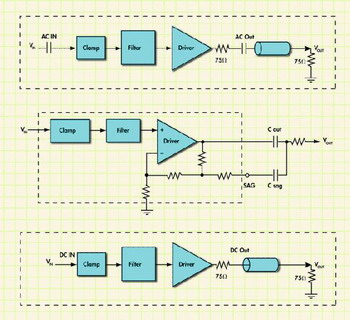 因此,直流耦合輸出信號可能是最劃算和直接的視頻信號耦合方法。此外,直流耦合還消除了輸出信號被兩次交流耦合的問題:一次在濾波器/驅動器的輸出端,另一次在媒體設備的輸入端。