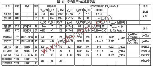 場效應晶體管在音響數字化的今天應用范圍越來越廣。其原理、優點和使用常識在一些工具書及報刊上已有不少論述,在此不再贅述。本文通過兩個容易被發燒友特別是初學者所忽略的要點來說明場效應管的合理應用。目前,應用于音響領域的場效應管包括結型管(JFET)和絕緣柵場效應管(MOsFET),而后者又分為LDMOS、VMOS及近年出現的UHC、IGBT等,并且至今仍在不斷發展與完善之中。