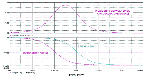 圖8.圖7電路的頻率響應(yīng),在1kHz至10kHz整個頻率范圍內(nèi)提供近似的90°相移。
