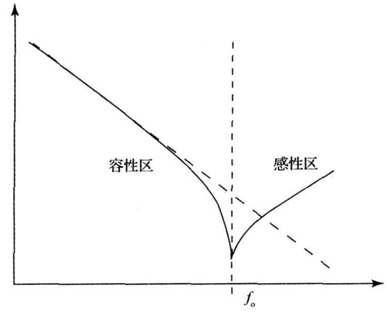 圖2 中的f 0 是電容與其寄生電感構成的諧振回路的諧振頻率, 稱之為自諧振頻率, 實線部分為實際的電容頻率特性曲線, 虛線為理想無寄生電感的電容特性曲線。可見, 在低于自諧振頻率時, 電容呈現容性, 阻抗隨頻率增高而減小; 然而當頻率超過自諧振頻率時, 電容表現出阻抗隨頻率增高而上升的趨勢, 這恰好是電感的特性。該曲線表明實際的電容僅能工作于自諧振頻率以下, 高于自諧振頻率時, 電容則表現為感性, 無法再繼續作為電容使用了。可見, 準確的測得電容的自諧振頻率, 求出其寄生電感, 對于電容的正確使用有著非常重要的意義。然而該電感往往非常小, 通常為nH 級別, 一般的LCR 電橋無法測量這種微小的電感。因此就需要一種不同于電橋法的測量這種微小電感的方法。