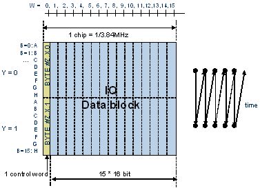 CPRI幀分成基本幀單元和超幀單元。基本幀單元的幀頻是3.84MHz,包括16個字(表示為W=0…15,其中W0為控制字,后15個字為I/Q數據),根據不同的鏈路速率,字的長度分別為8bits、16bits(如圖7所示)、32bits。超幀單元是由256個基本幀單元組成,其中,第1個基本幀單元里的控制字寫入K28.5標志作為超幀的同步控制信息,其余的255個基本幀單元里的控制字包含控制和管理字(C&M)、廠商自定義控制字等,并預留一些控制字。