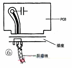 高頻電路中,印制導線分布參數(shù)對信號影響大,且不容易進行阻抗匹配,可局部使用專用屏蔽線連接,如圖7所示。