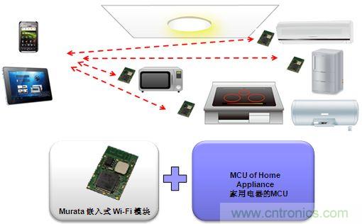 只需加村田的嵌入式Wi-Fi模塊,就可以用手中的手機(jī)或者Pad隨時隨地控制家中的電器。