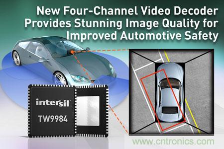 【導(dǎo)讀】近日,Intersil公司宣布,推出用于汽車環(huán)景泊車輔助應(yīng)用的新型四通道模擬視頻解碼器TW9984,該解碼器內(nèi)置有模擬視頻編碼器,可幫助提高駕駛員以及行人的安全性。