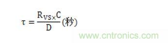 如上圖所示,在自舉驅動芯片VS端與Q1的源極之間增加一個電阻Rvs,該電阻不僅是自舉限流電阻,同時還是導通電阻和關斷電阻。由于占空比受自舉電容影響,該電阻值一般不能取得較大,推薦值為3~10Ω較為適宜。電阻和自舉電容的容值與其充電時間可以由以下公式得出: