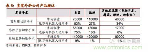 直覺外科公司是全球領先的微創機器人輔助手術機器人公司,2013年營收達22.65億美元,截止2014年第一季度達芬奇機器人累計銷售數量為3039臺,2014年8月總市值達159.60億美元。