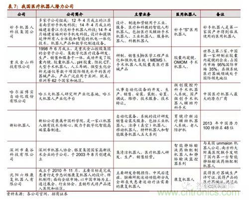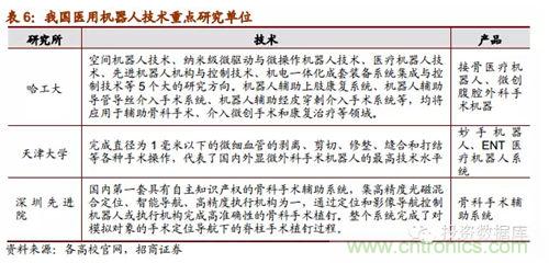 隨著醫用機器人技術的不斷突破和發展,從2005年開始我國有一批重點高??蒲嗅t院單位及研究所在研究醫用機器人系統并取得了一些小成就,比如哈工大的微創腹腔外科手術機器已經成功被專家驗收,天津大學的妙手機器人在今年3月份開始臨床使用;同時,隨著醫用機器人商業化市場化的可能性愈發明晰,已經有部分企業正在生產或者打算進軍醫用機器人細分行業,其中就包括機器人領先企業的博實股份和新松機器人。