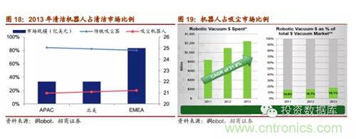 iRobot是家居清潔機器人的領先企業,產品戰略布局以家居清潔機器人為主。2014年上半年實現營收2.54億美元,2013年收入達4.87億美元,全球市場占有率超過60%,2014年8月總市值為10.10億美元