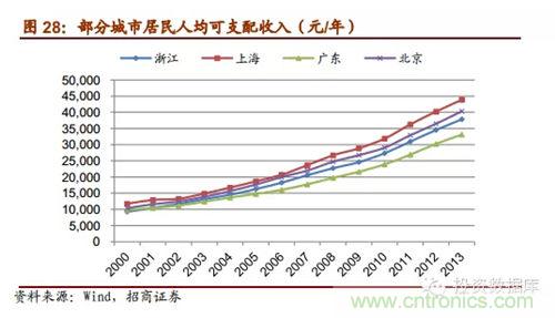 我國家用機器人發展最主要的驅動因素有勞動力價格的提高、城鎮居民人均可支配收入的提高等。勞動力價格的上升使得簡單勞動的設備替代率明顯上升,人們一方面想從簡單家務勞動中釋放出來而另一方面家政服務勞力的價格越來越高,因而家務機器需求有其剛性驅動。同時,隨著我國經濟的高速發展,在過去的10年里城鎮居民的可支配收入大致翻了三倍,人們生活水平和消費水平不斷地提高,越來越多的家庭具有家用機器人的購買能力。另外,現在信息和科技傳播速度飛快,各種科技產品成本在競爭中下降迅猛。iRobot2013年在中國市場的家用清潔機器人銷售額增幅大于3倍,剛公布的14年上半年年報顯示受中國需求的強勁拉動iRobot在亞太地區清潔機器人銷售增幅高達18%。在中國這種一個高速發展的人口大國,可預計,未來我國家用智能機器人的市場規模巨大。