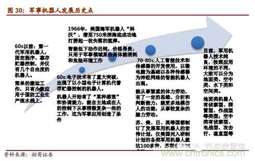 (五)軍事機器人是21世紀各國軍事安全重點戰略:蒂爾集團稱未來10年全球無人機研發投入和采購需求將達到940億美元。軍用機器人強國包括美德英法意以日韓,這些國家不僅在技術處于研究的先列,其產品已經在軍事上有了實際運用;我國與這些強國的技術差距明顯,受政策支持,軍事機器人相關企業發展前景明顯良好,可能成為企業未來強勁的收入保證。