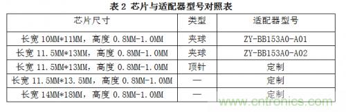 針對不同封裝的芯片,將有不同的適配器型號與之對應,如表2所示。