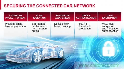 圖 2:作為汽車的網絡主干,有線以太網連接的固有安全特性有助于防護車載網絡免遭惡意攻擊、竊聽和未經業務許可的設備的安裝等脅威。