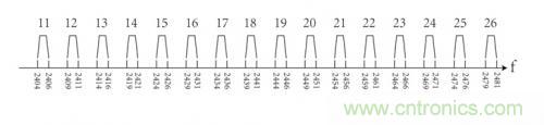 Wi-Fi在802.11b/g的標準的工作頻段為2.4GHz(2.4GHz-2.4888GHz),劃分為14個信道,每個信道帶寬為22MHz,Wi-Fi頻譜列表如下所示: