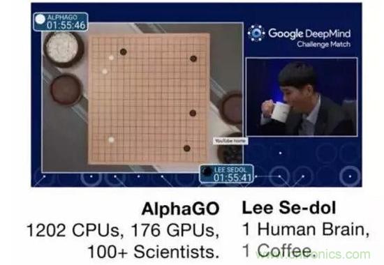 AlphaGo這次用到了1202 CPU,176 GPU,100多名科學家,而另一邊李世石,一個人腦+一杯咖啡。