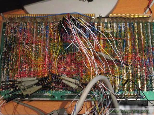 對(duì)于元器件在萬(wàn)能板上的布局,大多數(shù)人習(xí)慣“順藤摸瓜”,就是以芯片等關(guān)鍵器件為中心,其他元器件見(jiàn)縫插針的方法。這種方法是邊焊接邊規(guī)劃,無(wú)序中體現(xiàn)著有序,效率較高。但由于初學(xué)者缺乏經(jīng)驗(yàn),搭出來(lái)的板是這樣的……