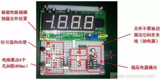 電源貫穿電路始終,合理的電源布局對(duì)簡(jiǎn)化電路起到十分關(guān)鍵的作用。某些洞洞板布置有貫穿整塊板子的銅箔,應(yīng)將其用作電源線和地線;如果無(wú)此類銅箔,你也需要對(duì)電源線、地線的布局有個(gè)初步的規(guī)劃。