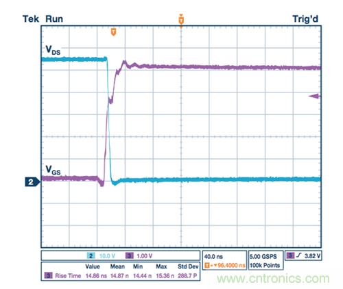 圖2. 無(wú)柵極驅(qū)動(dòng)器的MOSFET導(dǎo)通轉(zhuǎn)換
