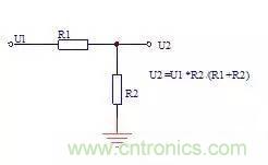 當一個電壓U1太高時,可以用兩只電阻構成分壓電路,降低電壓為U2,U2符合電阻分壓公式U2=U1*R2/(R1+R2) ,這種電阻在電路中一般稱為分壓電阻。