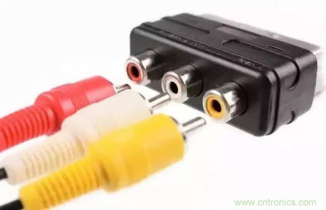 復(fù)合視頻接口是最基本的視頻連接器接口,過去主要用于家用視頻設(shè)備。這種接口常見于老款電視機(jī)、VCR和家用游戲機(jī),線和端子都是黃色。因?yàn)閷?duì)YUV三種源信號(hào)(Y:亮度,U/V:顏色)進(jìn)行同步復(fù)合(composite),所以稱為復(fù)合視頻。在同一個(gè)信道(line)傳輸亮度和顏色信號(hào),所以畫質(zhì)遠(yuǎn)不如后來出現(xiàn)的其他接口標(biāo)準(zhǔn)。復(fù)合視頻接口輸出的視頻分辨率最高可達(dá)SD(—standard definition)級(jí),也就是480i(NTSC)或576i(PAL)。模擬視頻連接器通常不包含音頻信號(hào),因此如上圖所示,需要單獨(dú)的音頻線。一般用白色(左)和紅色(右)兩個(gè)連接器傳輸立體聲信號(hào)。