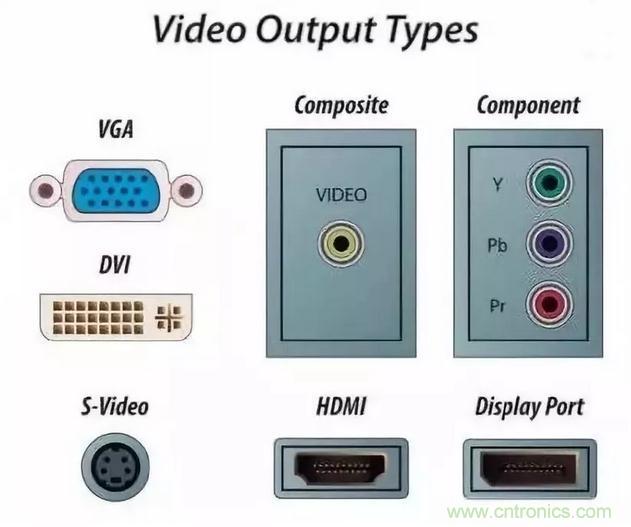 如上圖所示,電視機(jī)背面有幾個(gè)視頻連接器端子。今天我們來了解一下顯示連接器的種類及其特點(diǎn)。