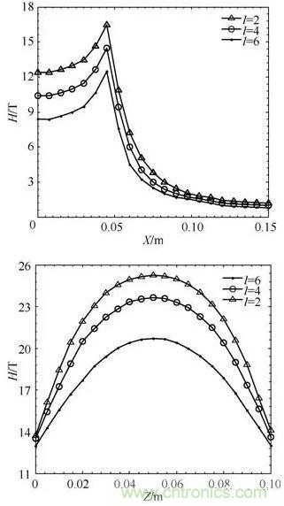 圖7:Z軸方向上H和B的分布云圖