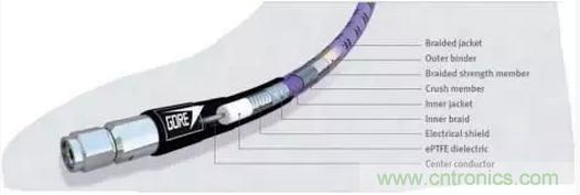 圖2:實際同軸電纜增加了與應用的電氣和機械要求相匹配的功能,如PhaseFlex電纜所示。