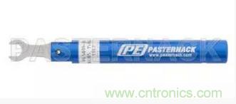 答:有幾家供應商提供高級測試場景所需的110-GHz電纜組件,如圖10所示。這些電纜的直徑只有1毫米,連接器相應很小。連接器或它與電纜的終端的任何缺陷,甚至灰塵斑點都會對性能產生不利影響,因此必須在每次使用前進行目視檢查。一家供應商甚至提供了一個專門的預設為4英寸-磅(最大0.45牛米)的“突破”扭矩扳手,如圖11所示,以確保連接器“恰到好處”地進行扭矩——這是至關重要的。