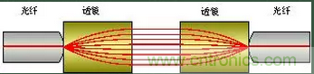 非接觸式光纖連接器(以擴束光纖連接器為例)的工作原理如下圖所示,光纖出射的光經(jīng)透鏡擴展光斑后,以近似平行的高斯光束出射,然后進入另一個透鏡并耦合進光纖中,實現(xiàn)光斑面積成百上千倍的增加以及非接觸的連接,可極大地提高光纖連接器在臟污、振動等惡劣環(huán)境下連接的可靠性。