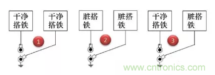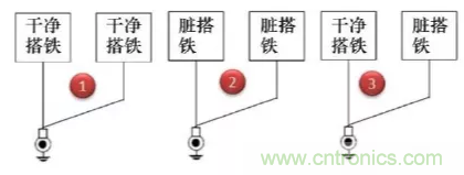 第1種方式干凈搭鐵回路之間的回路并接是允許的;第2種臟搭鐵回路之間的回路并接也是完全可以接受的;對于第3種臟搭鐵與干凈搭鐵回路并接,通常是可以接受的,但需要得到相關專業的評審通過。
